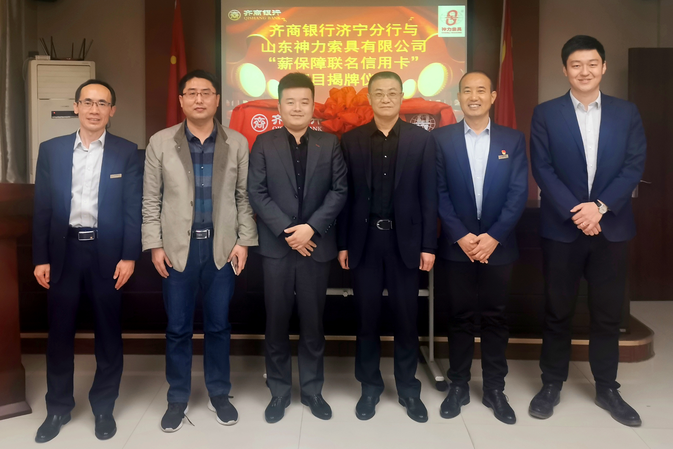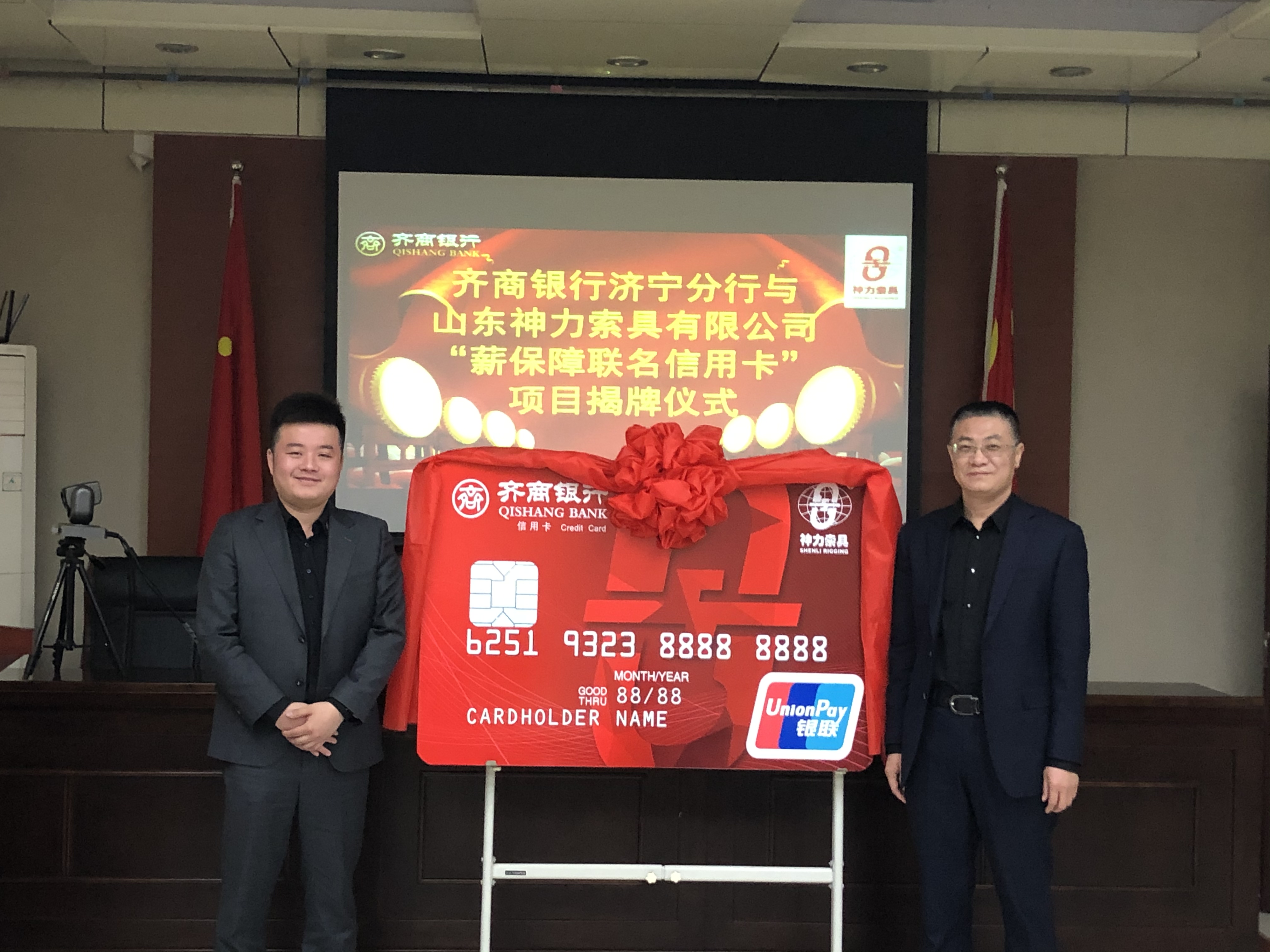 4月22日,山東神力索具有限公司總經理杜大平與齊商銀行濟寧分行行長鄭海贏共同為“薪保障聯名信用卡”卡面進行了揭牌儀式,正式達成協議。本次合作項目根據我公司實際情況,為我公司員工量身定制了專屬“薪保障聯名信用卡”。