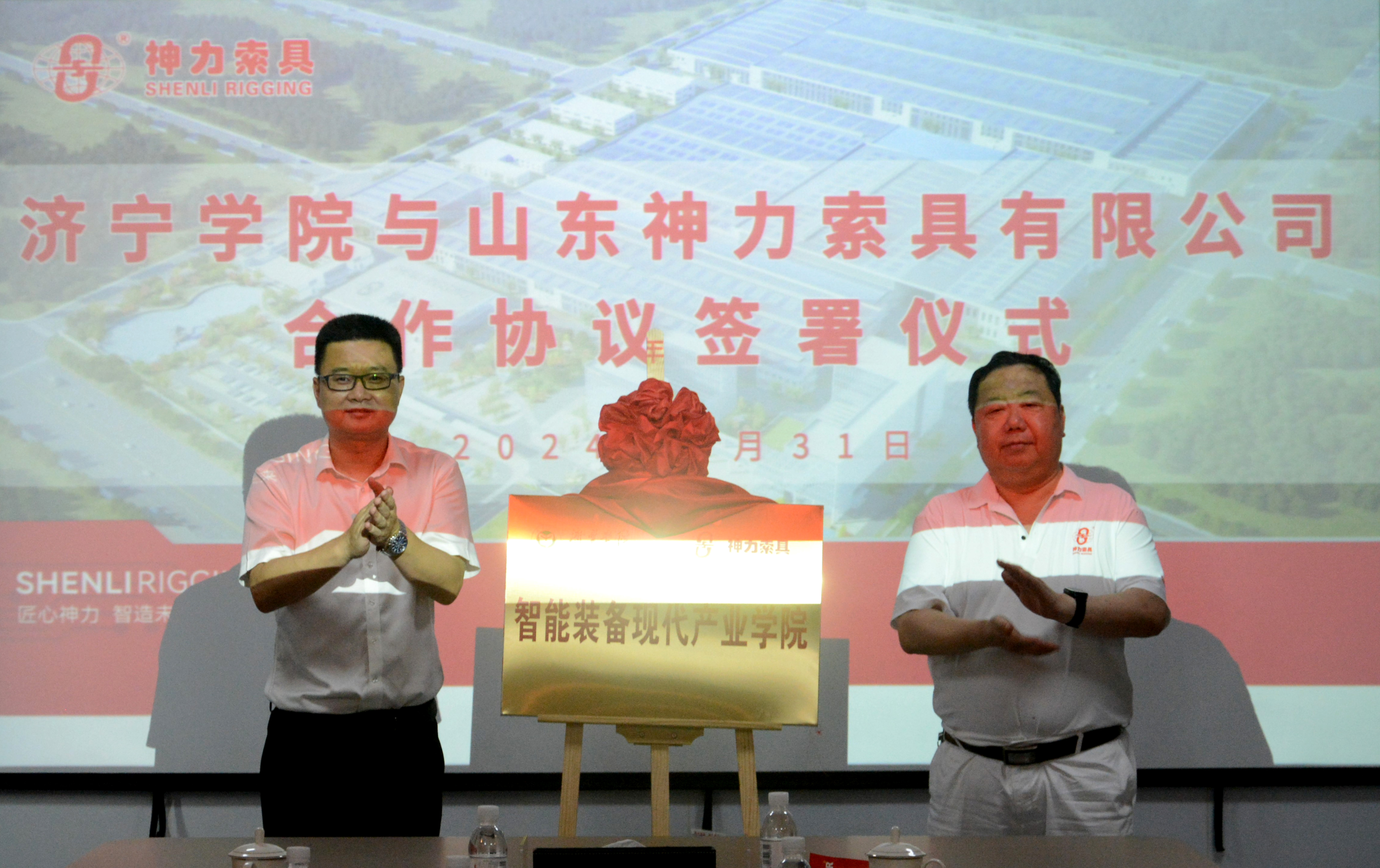 濟寧學(xué)院副校長劉國棟與神力索具黨委書記杜亞中共同為“濟寧學(xué)院實踐教學(xué)基地”、“濟寧學(xué)院-神力索具智能裝備現(xiàn)代產(chǎn)業(yè)學(xué)院”揭牌。劉國棟表示,神力索具作為市域智能制造轉(zhuǎn)型升級模范企業(yè),是廣大理工科學(xué)子向往的實踐寶地,通過合作建立該學(xué)院,將大大提高實踐教學(xué)質(zhì)量,激發(fā)廣大學(xué)子科技創(chuàng)新精神、創(chuàng)業(yè)能力和實踐能力。校企合作,互利共贏。在未來將形成更多的高質(zhì)量合作成果,推動區(qū)域高質(zhì)量發(fā)展。