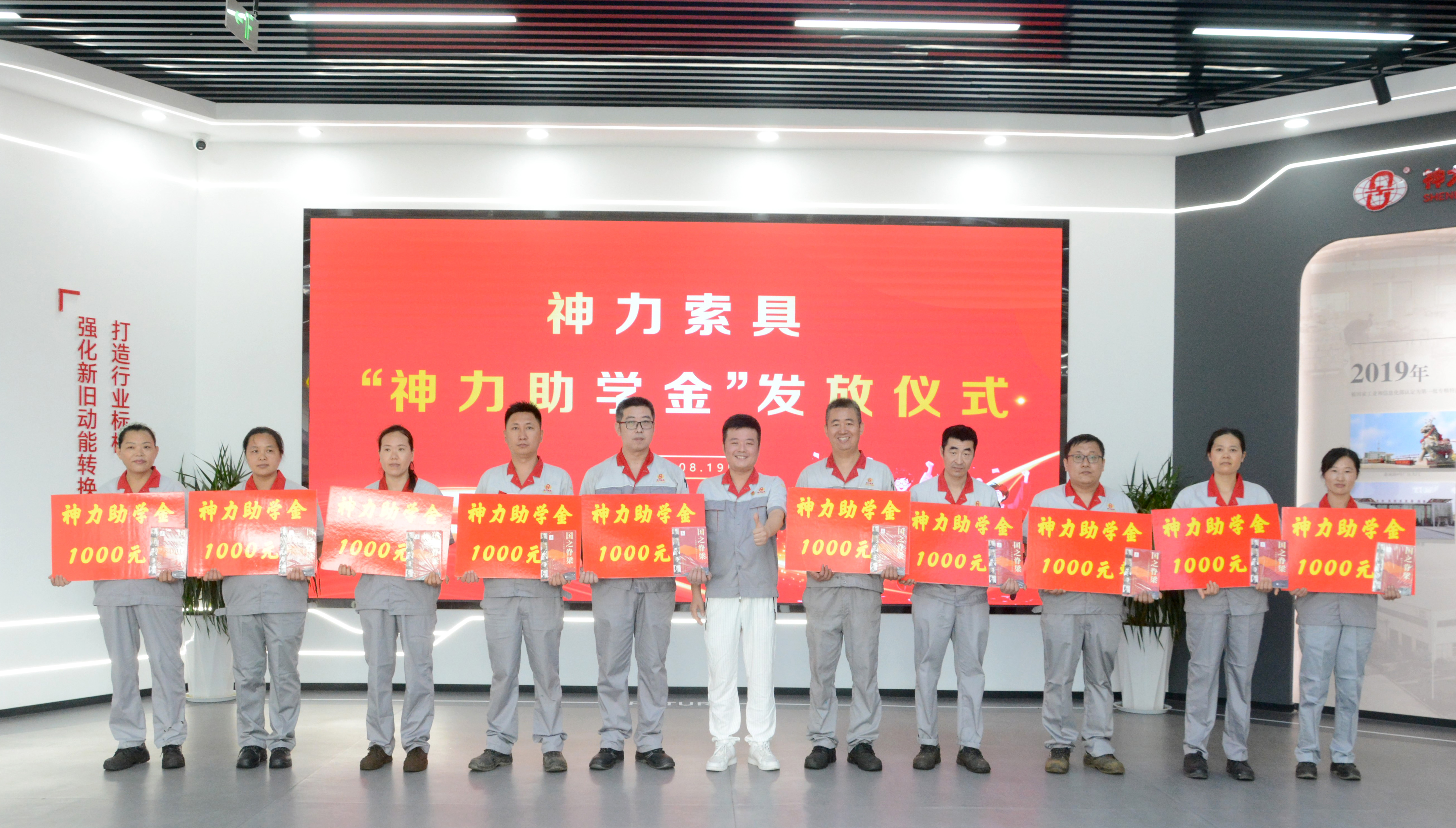 為深入落實企業(yè)核心價值觀,激勵廣大學(xué)子志存高遠(yuǎn)、奮力拼搏,8月19日,神力索具在智能制造產(chǎn)業(yè)園科技智慧展廳舉行職工高考學(xué)子升學(xué)助學(xué)金發(fā)放儀式,為今年考取本科的11位應(yīng)屆職工學(xué)子發(fā)放神力助學(xué)基金。