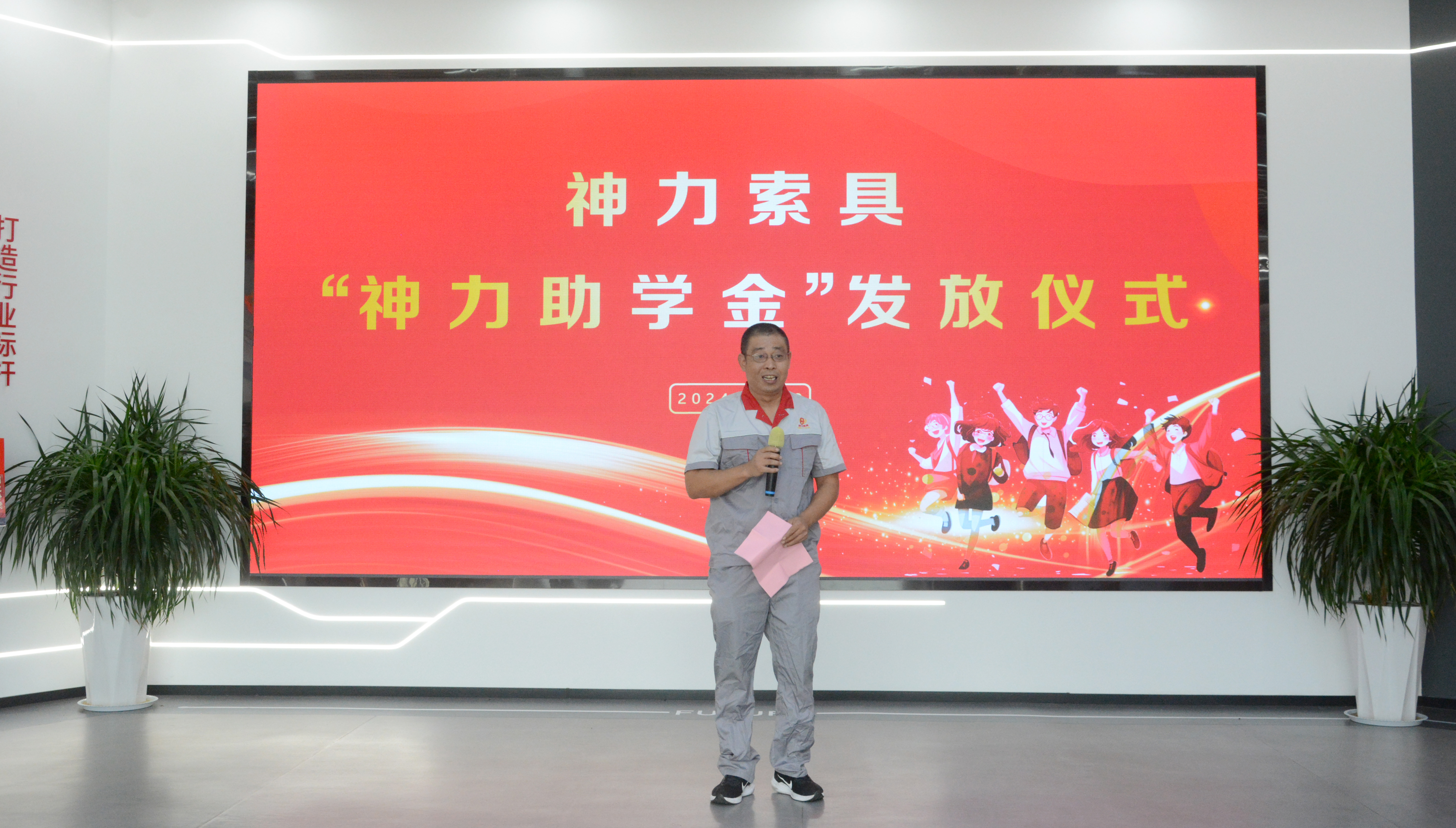 發(fā)放現(xiàn)場,董事長兼總經(jīng)理杜大平首先代表公司恭喜各位升學(xué)學(xué)子和多年來悉心栽培、無私付出的各位職工家長。他講到,“神力助學(xué)金”設(shè)立的初心,既是“以人為本”的企業(yè)價值觀體現(xiàn),更旨在通過表彰在學(xué)習(xí)當(dāng)中取得優(yōu)異成績的職工學(xué)子,鼓勵新時代年輕人繼續(xù)努力,勇攀高峰。同時激勵更多職工家庭關(guān)注子女學(xué)業(yè)和教育,從而在形成尊重教育、尊重知識、尊重人才的良好氛圍,為推動經(jīng)濟(jì)社會高質(zhì)量發(fā)展提供有力的人才支撐。