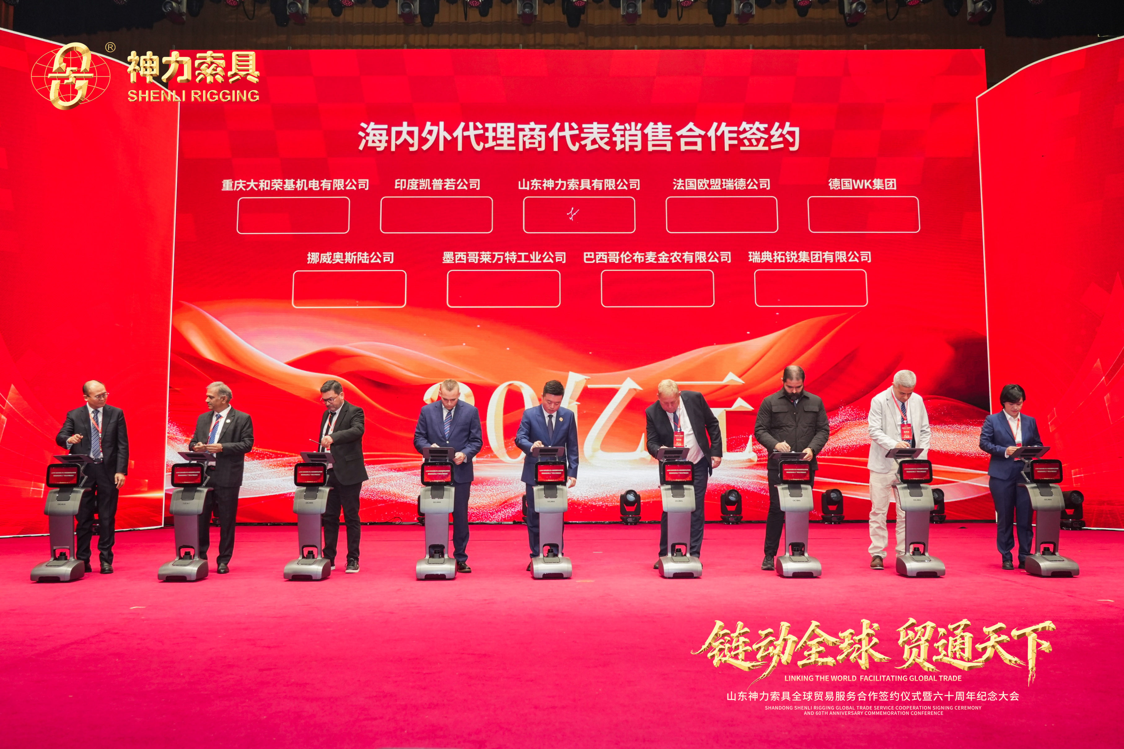 六十年風(fēng)雨兼程,一甲子春華秋實(shí)。10月26日,以“六十載崢嶸歲月 新征程再譜華章”為主題的神力索具全球貿(mào)易服務(wù)合作簽約儀式暨六十周年紀(jì)念大會(huì)隆重舉行。這一刻,閃耀著神力索具六十載奮斗的熠熠光輝,承載著企業(yè)對未來的美好憧憬。政府領(lǐng)導(dǎo)、合作伙伴、國內(nèi)外客戶及公司員工代表齊聚一堂,共慶神力索具六十華誕,共同見證神力索具全球貿(mào)易服務(wù)合作簽約的重要時(shí)刻。場內(nèi)洋溢著喜慶熱烈的氛圍,每一個(gè)角落都訴說著企業(yè)六十年來的成長與蛻變。